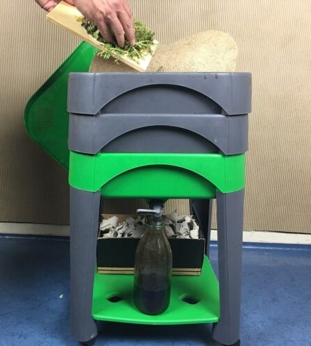Les déchets alimentaire seront placés dans une boite en bois ou en plastique, afin d’être dégradés par nos amis les petits vers de compost, nos supers décomposeurs !